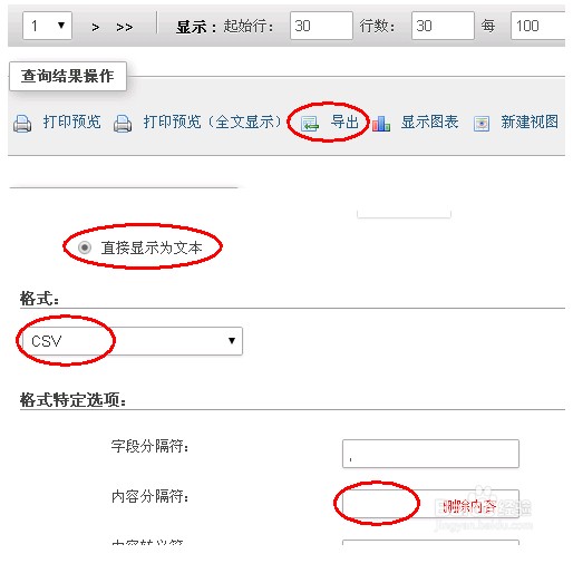 在執(zhí)行SQL語(yǔ)句生成的頁(yè)面上點(diǎn)擊“導(dǎo)出”,選擇“自定義”->“直接顯示為文本”,CSV格式,清空“內(nèi)容分隔符”為空。
