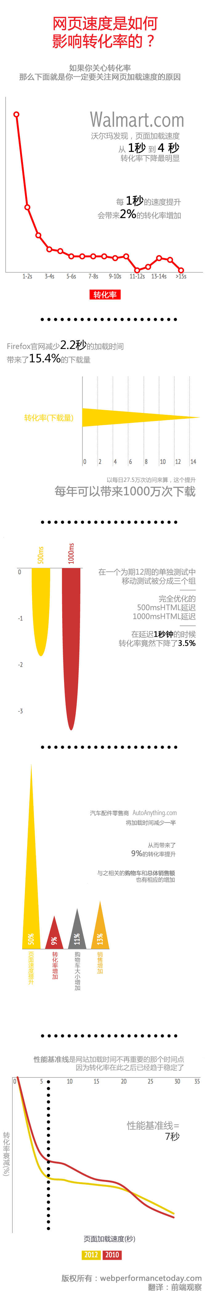 我們一直很重視網(wǎng)站性能優(yōu)化,在人才培養(yǎng)和招聘的時候也都非常重視,但性能優(yōu)化到底為什么這么重要?對電商網(wǎng)站來說,性能優(yōu)化對轉(zhuǎn)化率的影響是實實在在的,也是非常有說服力的,這是國外同行webperformancetoday的研究成果,簡單翻譯一下分享給大家。